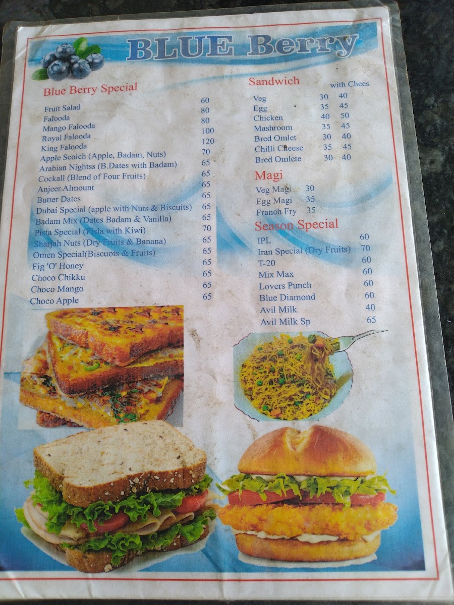 For beverage enthusiasts, Blue Berry doesn't disappoint. You can indulge in their refreshing selection of Vegetable Juices, like Carrot, Beetroot, and Cucumber juices, all freshly prepared to give you a revitalizing boost. If you're in the mood for something sweet, you can also sip on their special Avil Milk, a comforting treat that's sure to evoke fond memories.
